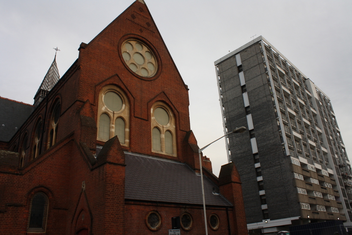 Old and new: St Chad’s Church, built 1868, next to a housing estate. The church was described as “part of the massive Victorian effort to bring the workers of East London into the Anglican Church.” November 16, 2013 1200 × 801 15-IMG_1776