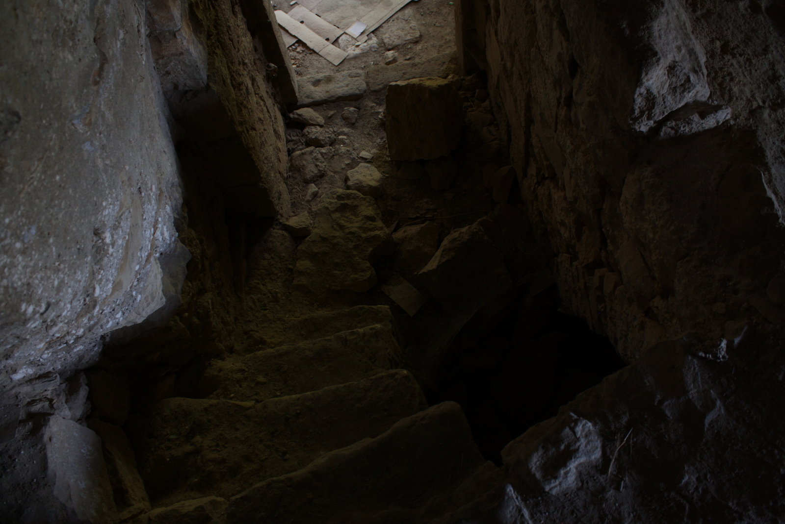 In one house, the biggest we have been able to enter, a giant crater opens up in the middle of the floor. We stick to the edges, wondering how easily the hole was made, also awed by such a large space opened up by what seems to be a very small hole in the roof. I read later an account of a Palestinian from Lifta, who says that once the village was cleansed of its inhabitants, Israeli soldiers blew holes in the roofs of the houses to make them unlivable.[3]