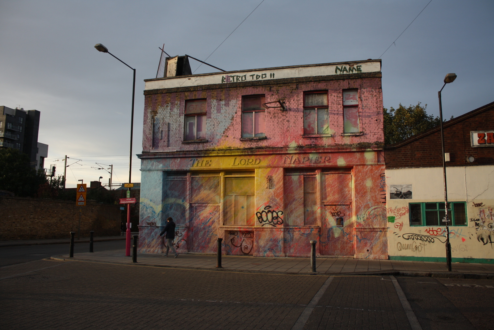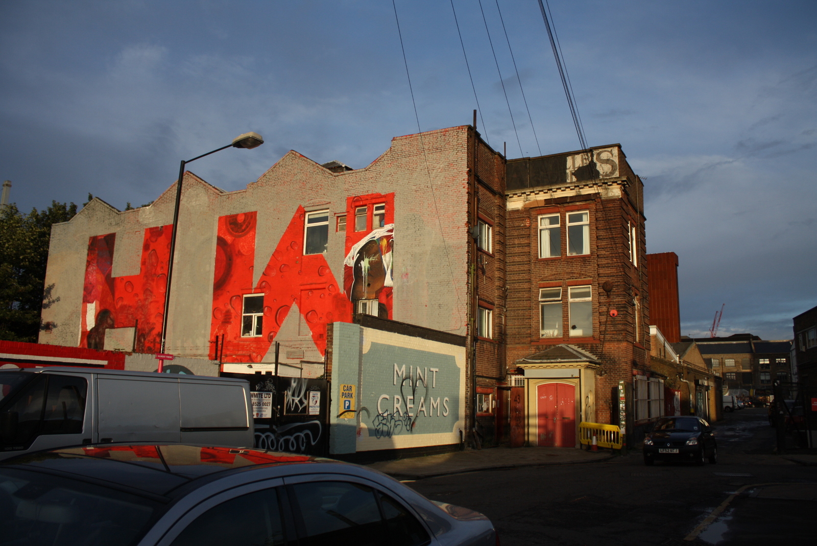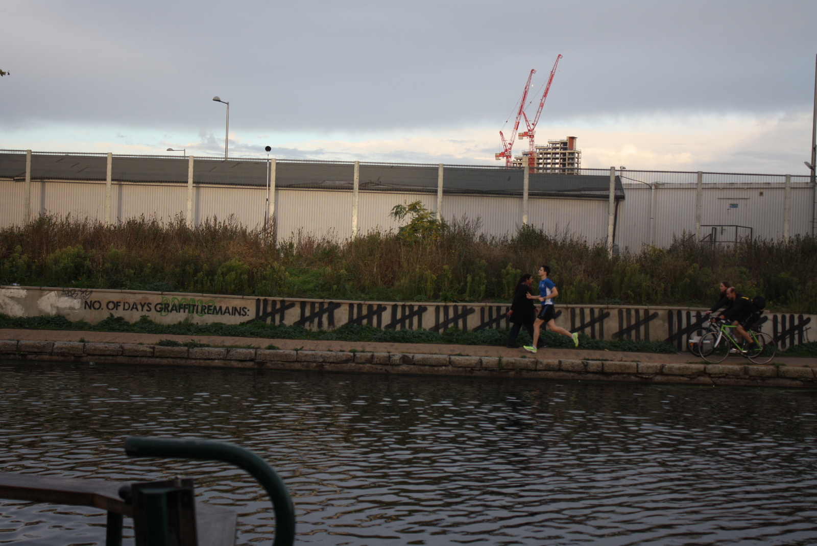 These photos were taken on a walk from Mile End to Hackney Wick, which is the small space of land that is part of the larger borough of Hackney but also falls into the “Olympic fringe area” adjacent to the Olympic park. It is rather divided from the rest of the borough of Hackney. The area’s industrial history shows itself among the new housing developments springing up and young artist types searching for cheaper rent and blank canvases.