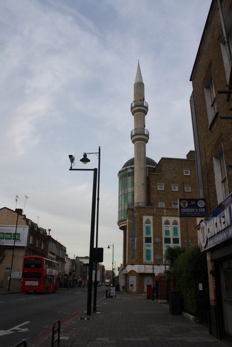 Süleymaniye Mosque, opened in 1999, on Kingsland Road. Built with Turkish funding, it includes a function hall, a school and a canteen. November 16, 2013 801 × 1200 27-IMG_1817