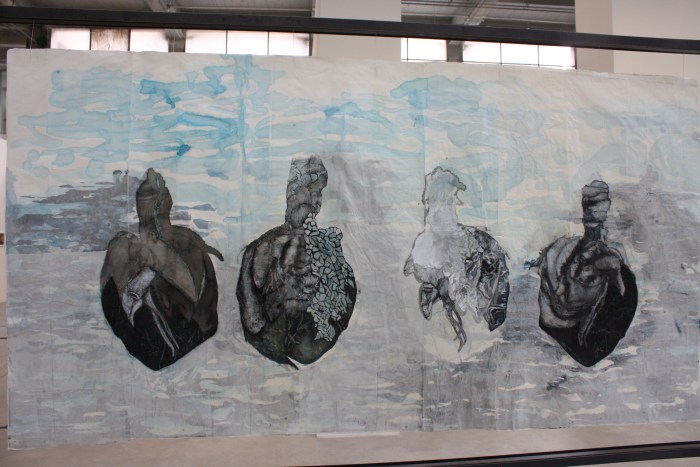 Other works are more obviously “invisible,” such as American artist Robert Barry’s Electromagnetic Energy Field (1968) in which an electromagnetic energy transmitter sends out invisible waves of energy. We can’t see the energy field, we may not be able to tell that it is there, and yet it unquestionably exists. Inevitably, it made me think of all the other forces in the universe which are invisible to humans, but which have a profound effect on our world regardless. Some are physical, like gravity; others are even less easily categorized, like human emotions. Similarly ambiguous, Tom Friedman’s 1000 hours of staring (medium: “Stare on paper”) appears to consist of a rather large, though utterly blank, white sheet of paper. Of course, seeing this framed and displayed on a museum wall can be a little frustrating. But the more I thought about it, the more the idea of using “stare” as a medium made complete and total sense. Many artists use bodily fluids or other unconventional materials to create works of art; just because you can’t see the effect on paper, why is a stare different? Staring at the paper, glimpsing my own reflection in the glass, immediately evoked the 1,000 hours of intent and focus the artist spent looking at this same sheet of paper, a sheet of paper that will in turn be stared at fleetingly by thousands of people. Love it or hate it—the concept is powerful.