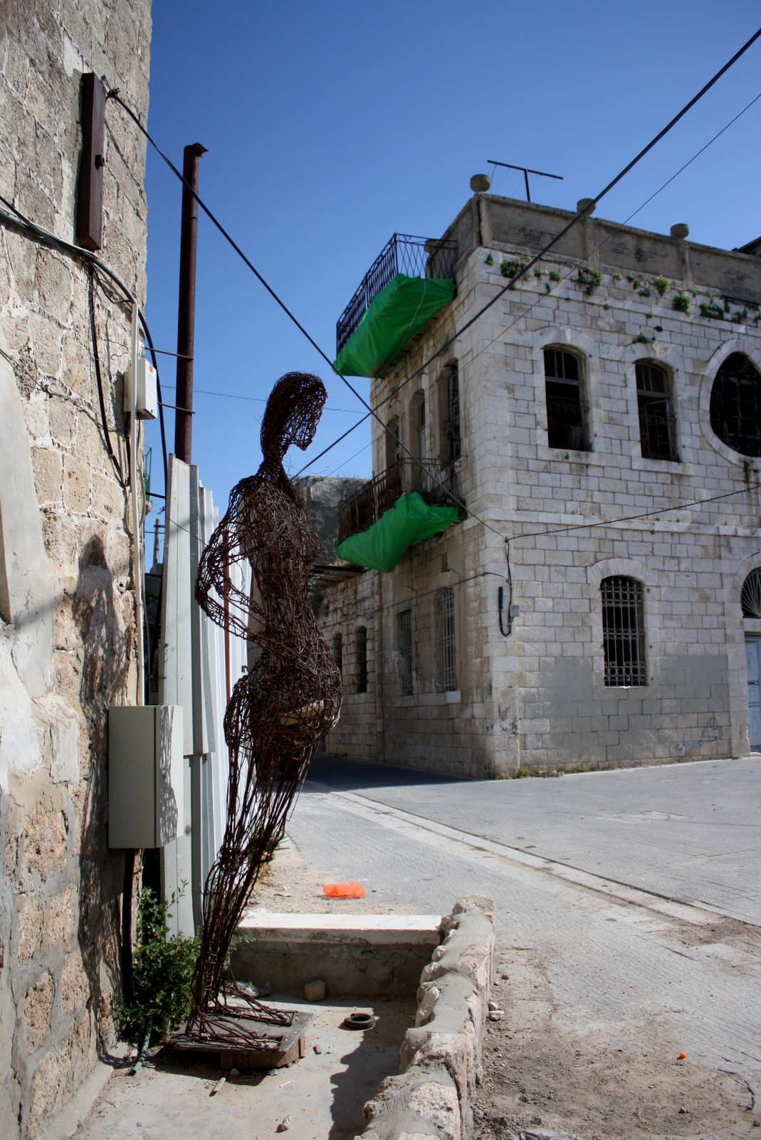 Then, in addition to experiencing some of the famed Ramallah nightlife, I’ve also had glimpses into its art scene: first when a new Palestinian friend had me stop by a community art center where a group of young artists, architects, and engineers were working tirelessly to build a “pixelated” model cow out of tiny wooden cubes. As with most things here, there is a political message in there somewhere. And then a couple chance encounters led me to spend the evening of the otherwise-quiet Eid holiday with a prominent Palestinian hip-hop artist and an Italian rapper, where on the drive home they each freestyled over an Aaliyah song, one in his native Arabic and one in his native Italian.